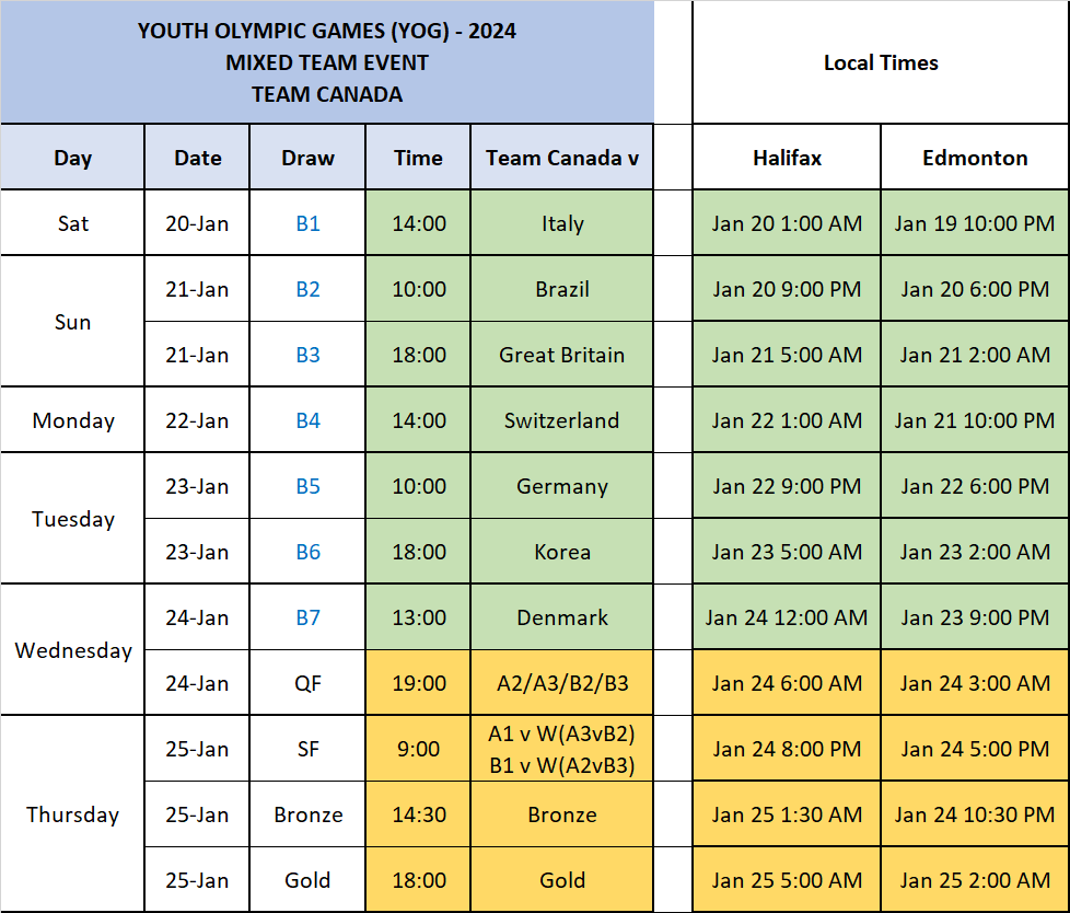 Team Canada Schedule - At a Glance! Round Robin in Green; Gold are "Must Qualify"