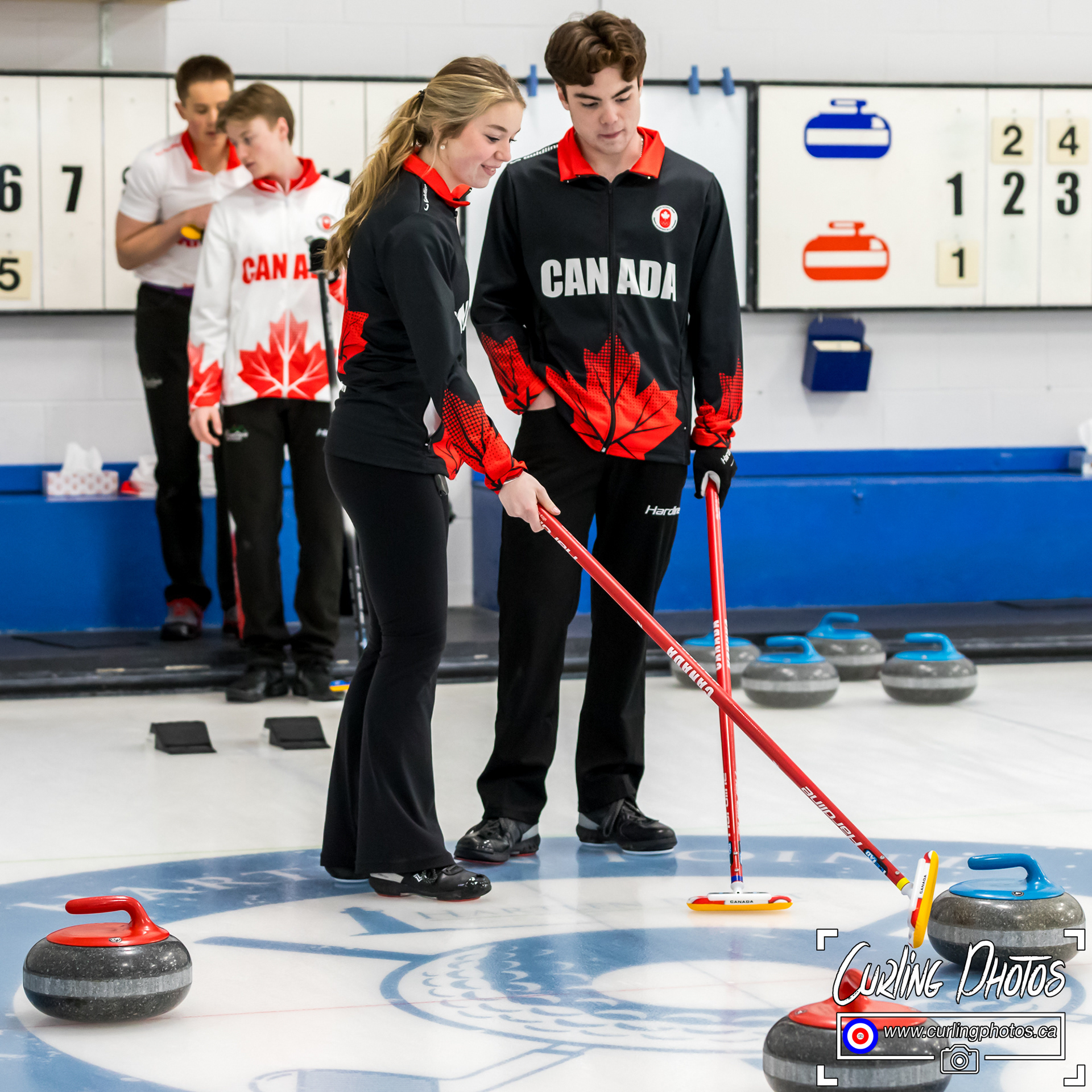 YOG Mixed Doubles Team Canada In Black Jerseys: Cailey Locke (Conception Bay South, NL) Simon Perry (Portugal Cove, NL) Cailey and Simon are in Halifax to tune-up in a high-level (international talent!) Mixed Doubles Event. They'd planned to play Japan on Saturday but the Japan team was ill.... so this offered a great opportunity for a scrimmage with part of the YOG Mixed Foursome from the area. In White Jerseys: Nathan Gray (Dartmouth, NS) Owain Fisher (North River, NS) Missing from the foursome pictures but on the White Jersey Team: Chloe Fediuk (Edmonton, AB) Allie Iskiw (Edmonton, AB) Team Canada Coach: Helen Radford All six youth athletes are traveling to South Korea this month!